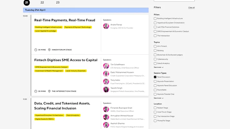 人とアイデアの出会いがビジネスを変えてくれます。 フィンテックの未来を形作る、業界をリードする350名以上の講演者と規制当局者を集めた独立した中立的なプラットフォーム。成功に導く最高の体験をお届けします。